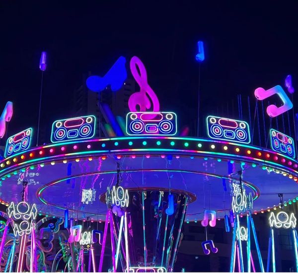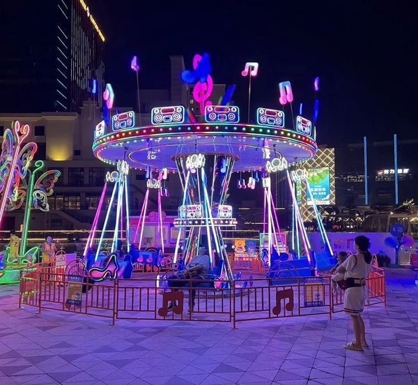 ④ 刺激好玩的网红飞椅 由于其独特的体验和美观的外观设计,音乐飞椅很快成为了网红打卡的热门项目。